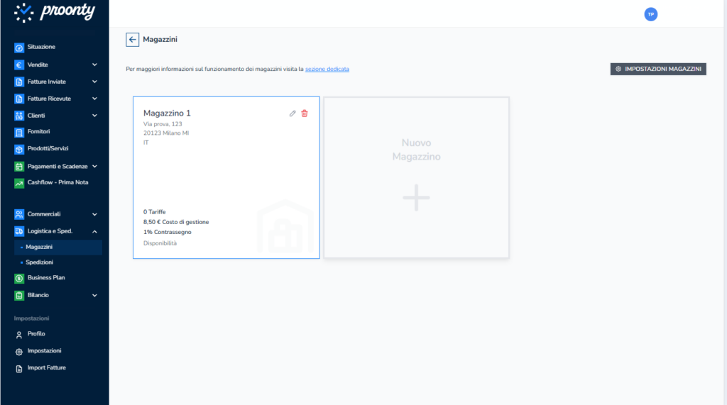 Proonty ti permette di gestire più magazzini contemporaneamente e di avere una visione chiara delle giacenze e dei movimenti. Tutti i dati vengono raccolti e organizzati per offrirti un controllo costante sull’andamento della logistica.